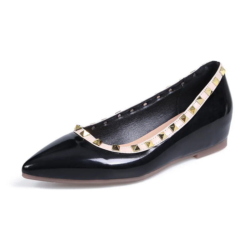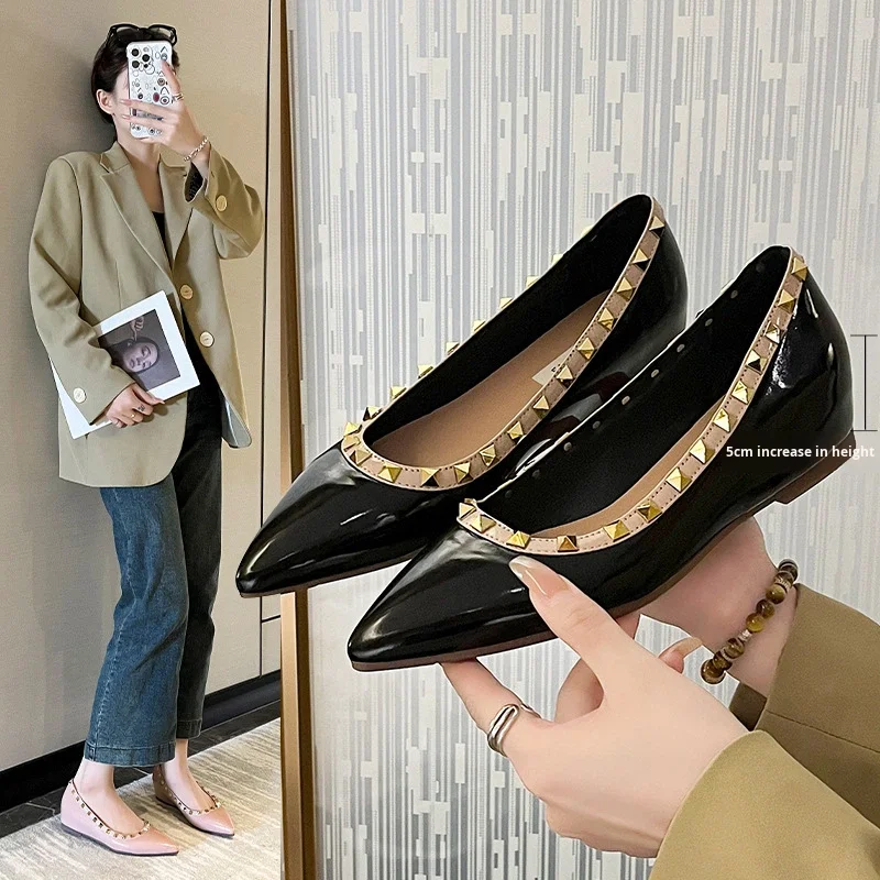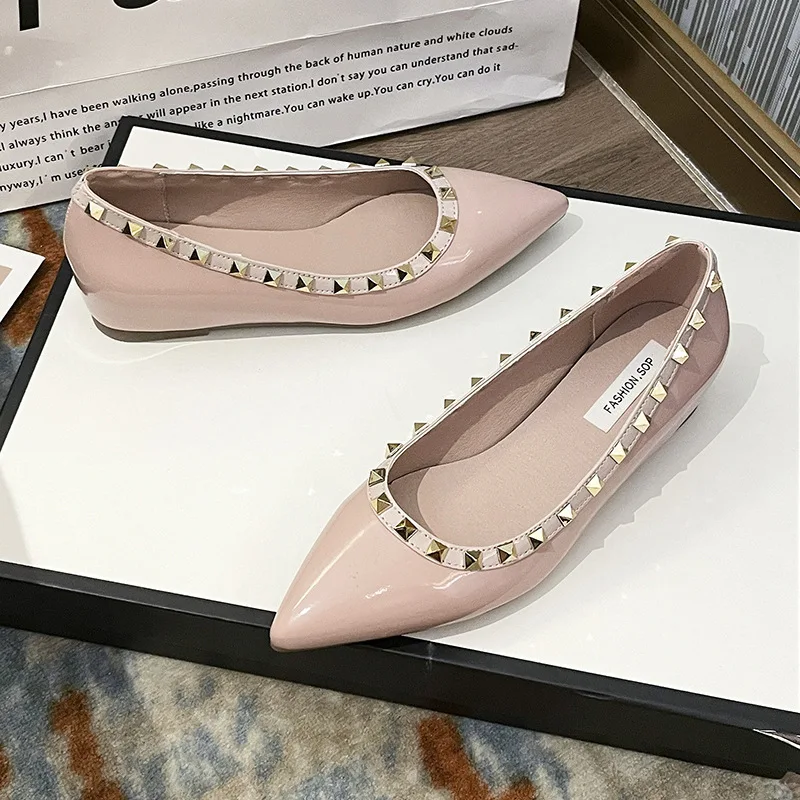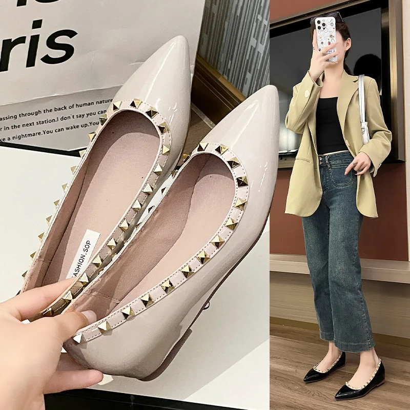 QuiteS 2026 Pointed Toe Rivet Single Shoes Elegant Slip-On Shallow Commuter Flat Sandals for Women